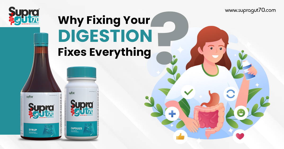 Supra Gut 70 is not a quick fix. It’s a wise fix for 70 days. Fixing all stomach problems with a single remedy. Backed by Ayurvedic knowledge, it’s gentle on the system, yet powerful enough to change how you feel — from the inside out. And that’s why fixing digestion fixes everything.